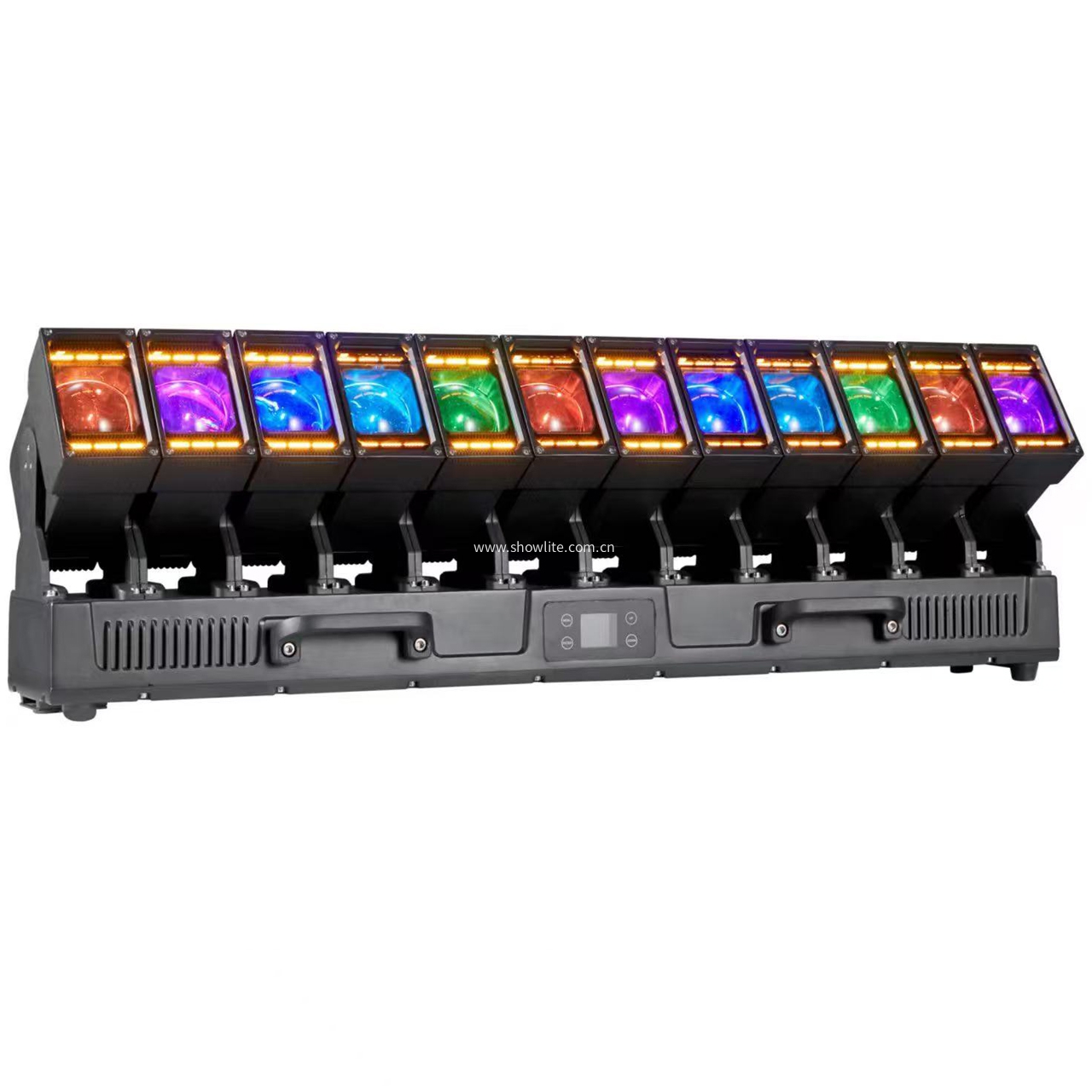 SL-M1260-BZ-IP is an outdoor LED moving curve beam bar light with zoom and pixel control. It uses high quality RGBW 4 in 1 60W x12PCS LEDs as its light source, each light source can be controlled individually. This fixture can project dynamic pictures and strong dynamic multi-directional beam in three-dimensional space, pan/tilt driven by DMX signal, light changes controlled by video which can create very gorgeous light effects.